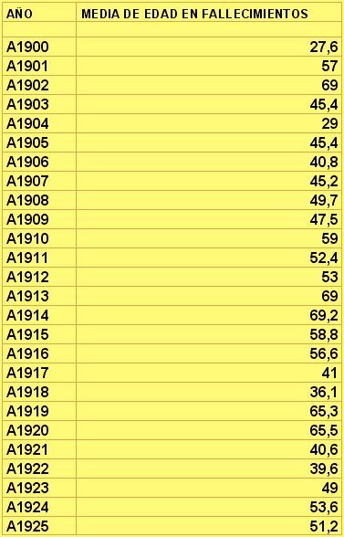 La media de nacimientos en esta primera cuarta parte del siglo XX es de 34,6 nacimientos al año.